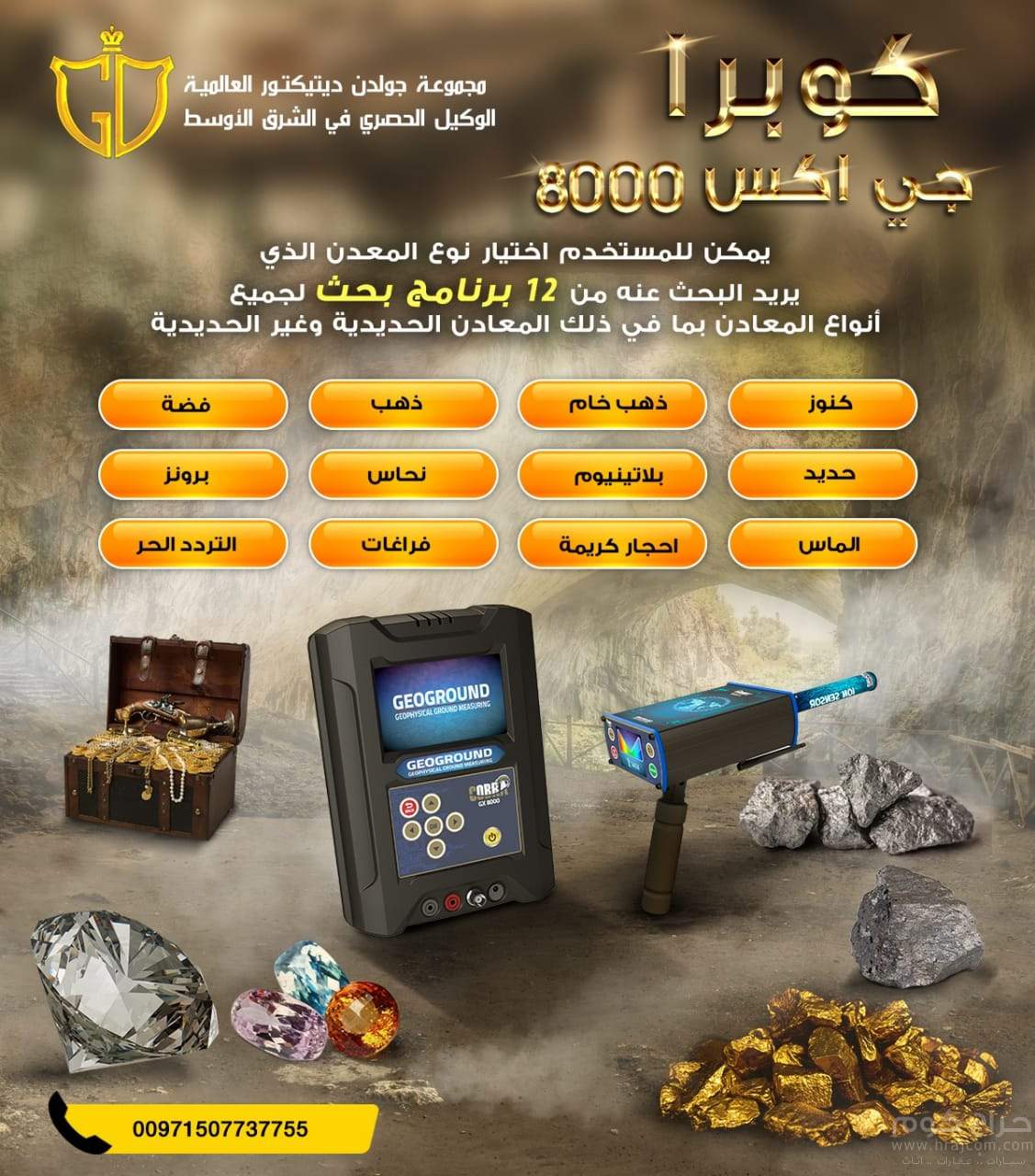 احدث واقوى اجهزة كشف الذهب 2020 جهاز كشف الذهب كوبرا جي اكس 8000 باحدث تكنولوجية ألمانية متقدمة من شركة جولدن ديتكتور العالمية لكشف الذهب والمعادن الثمينه والكهوف والفراغات يعمل الجهاز على ستة انظمه بحث مختلفة وعمق يصل الى 40 متر, جهاز عالي الدقه وسهل الاستخدام ضمان 5 سنوات