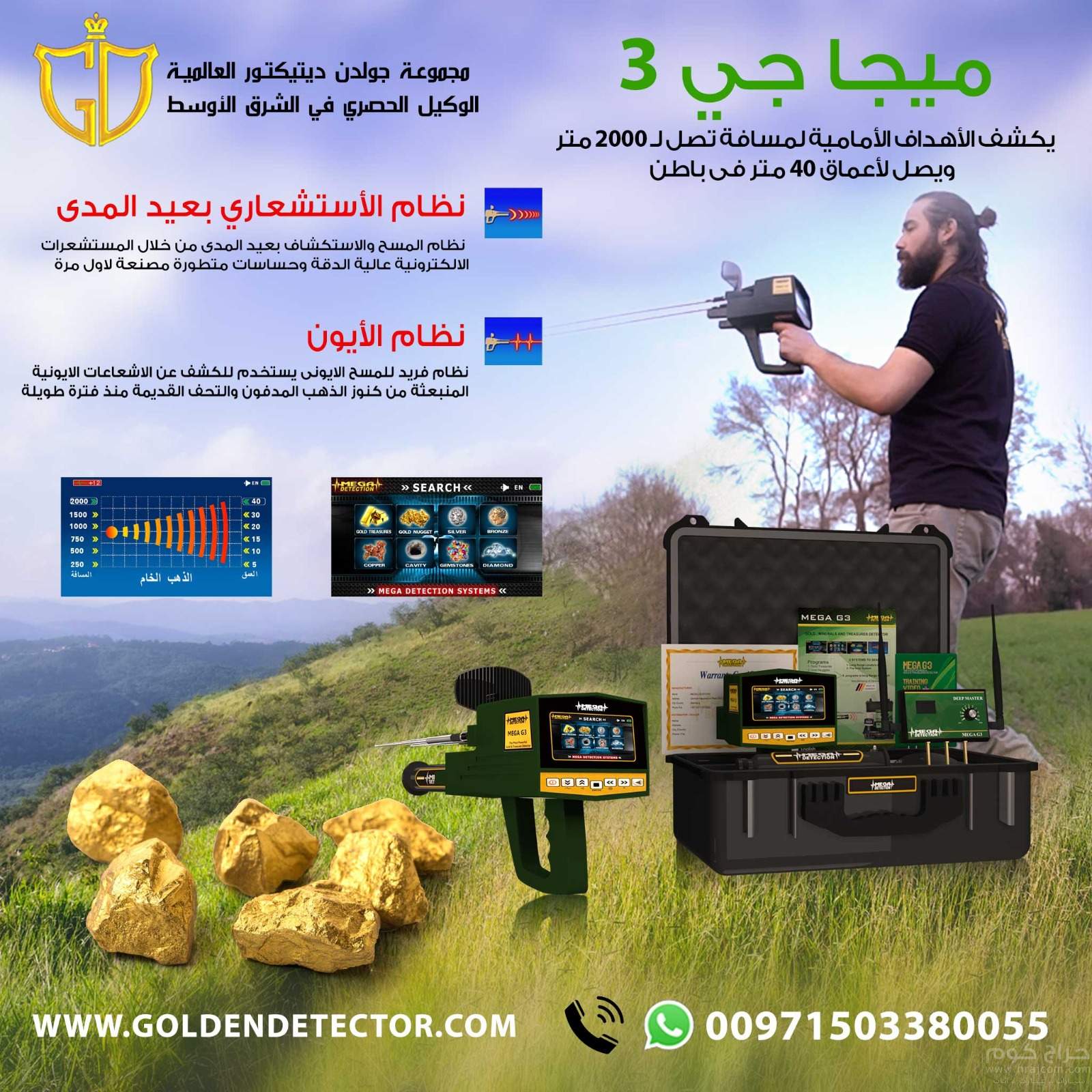 تقدم شركة جولدن ديتكتور جهاز كشف الذهب والكنوز الذهبية ميغا جي3 أفضل جهاز من شركة Mega Detetcion العالمية
