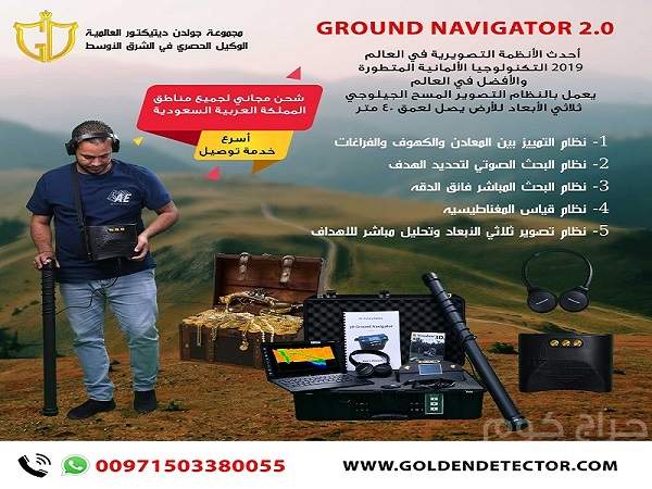يساعدك الجهاز الالمانى العريق جراوند نافيجيتور على اكتشاف ادق الاهداف العميقة وذلك بفضل وصول الجهاز لعمق 40 متر دون التأثر بالظروف المناخية والتضاريس