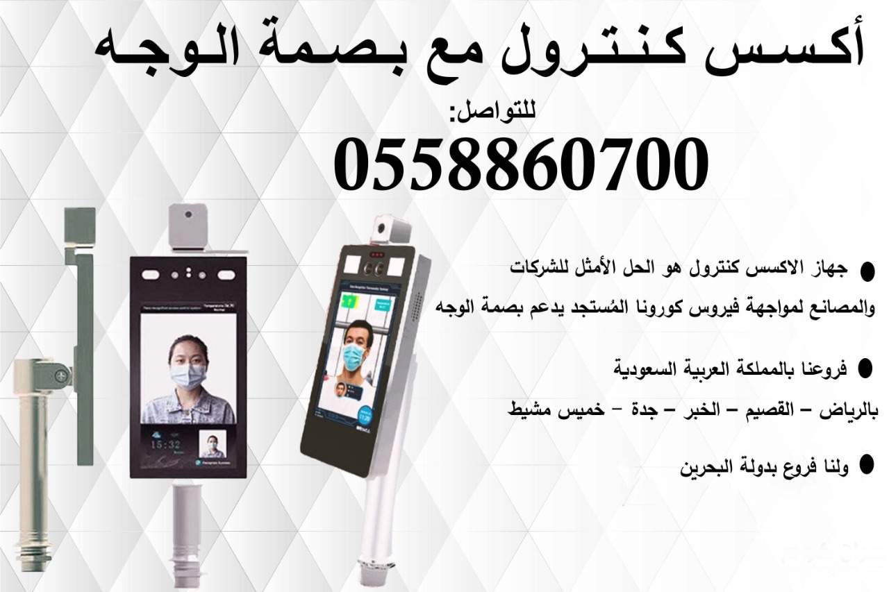 مميزات جهاز الأكسس كنترول * يتيح الجهاز البصمة بالوجه * كما يمكنه التعرف على حرارة الجسم من بعد يصل إلي 1.2م * وبالتالي فهو يمنع انتقال العدوى عن طريق الملامسه باليد أو الأصابع * كما يشتمل على خاصية غلق الأبواب وتسجيل بيانات الدخول والخروج *يقوم الجهاز بعمل انذار ضوئي وصوتي عند قياسه لدرجة حرارة غير مسموح بها * يصلح للشركات الخاصه والدواوين الحكوميه والمدارس و المستشفيات والعديد من المنشأت الأخرى سرعه في التركيب والتدريب المجاني منافسه في الأسعار وضمان عامين فروعنا _____ المملكة العربية السعوديه ( الرياض _ جده _ القصيم_ الخبر _ خميس مشيط ) والبحرين راسلنا على ت/ واتس / 0558860700