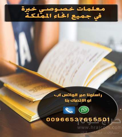 معلمات خصوصي في جميع المواد تحصيلي وقدرات بشمال وشرق الرياض معلمين ومعلمات في جنوب الرياض شرق الرياض، غرب الرياض، شمال الرياض جميع التخصصات (حكومي - أهلي - انتر ناشيونال) من أكفأ وأفضل معلمين ومعلمات في المملكة لجميع المراحل ابتدائي - متوسط - ثانوي – جامعات