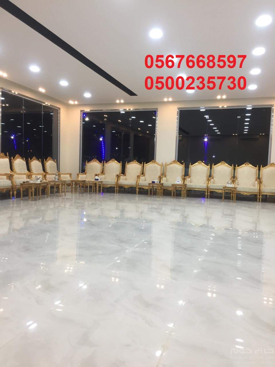 مؤسسة وهج الحفل لتجهيز الحفلات تقدم لكمايجار خيام المانيه وعاديه مناسبة لجميع الأذواق والمناسبات العامه وإلخاصه للايجار كنب شعبي مركاز وإيجار كنب ملكي كراسي فندقي وشفاف ونابليون وجميع انواع الكراسياختار ما يناسبك من الصورللتواصل معنا عل الارقام التاليه:05676685970500235730
