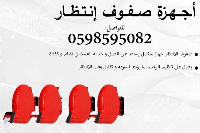 نقدم لكم أجهزة ترتيب صفوف الانتظار جهاز متكامل يساعد على العمل و خدمة العملاء في نظام و كفاءة, فهو يعمل على تنظيم الوقت مما يؤدى للسرعة و تقليل وقت الانتظار , يعمل جهاز انتظار العملاء عن طريق رقم يأخذه العميل ويقوم الجهاز بإخراج ورقة مرقمه بشكل تسلسلي بحيث تعطى رقم للعميل ولا يتكرر ومن ثم يكون الموظف الذي يقوم بالخدمة بتغيير الرقم بالشاشة بشكل تسلسلي
