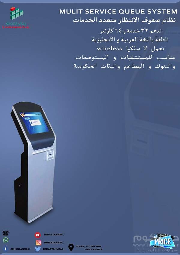 لسهولة التعامل اتينا اليكم بعرض خاص وبسعر مناسب أجهزة ترتيب صفوف الانتظار، حيث يساعد على النظام وكفاءة العمل، والحد من وقت الانتظار، ويعمل الجهاز عن طريق رقم يأخذه العميل ويقوم الجهاز بإخراج ورقة مرقمه بحيث تعطى رقم للعميل ولا يتكرر ومن ثم يكون الموظف الذي يقوم بالخدمة بتغيير الرقم بالشاشة، ولدينا خدمات التركيب والصيانة، فروعنا بالمملكة:الرياض،القصيم،الخبر،جدة،خميس مشيط، ولنا فروع في البحرين، للتواصل عبر الواتساب:0598589293