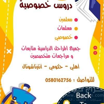 نوفر لكم أفضل المعلمين والمعلمات تأسيس ومتابعة جميع المناهج ( أهلي _ حكومي _انترناشونال)
