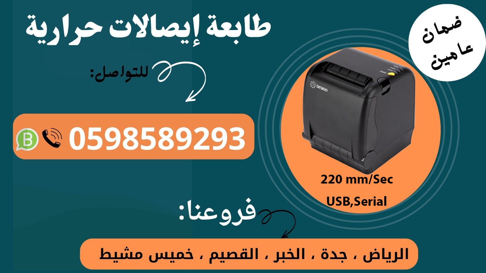طابعة حرارية عملية توفر عليكم الوقت والمجهود وموفرة للطاقة والورق بالمقارنة للطابعات الاخري الموجودة في نفس المجال وتعمل بمصدر كهرباء 110 الي 220 فولت وبسرعة طباعة تصل الي 220 ملم في الثانية الواحدة بدقة وضوح 180 DPI في الانش الواحد .