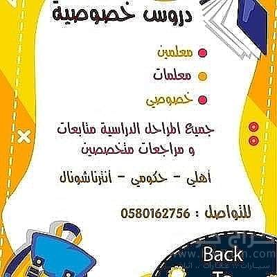 نوفر لكم أفضل المعلمين والمعلمات تأسيس ومتابعة جميع المناهج ( أهلي _ حكومي _انترناشونال)
