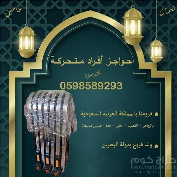 يسهل طيها ويسهل فتحها لتعمل ك بوابات لتنظيم حركة الافراد حواجز متحركة أمنية لتنظيم حركة المرور حاجز حديد متحرك علي كفرات عجل (حواجز منطوية) والتى تستخدم ضمن وسائل الامن والسلامة يوجد منها الالومنيوم والاستيل