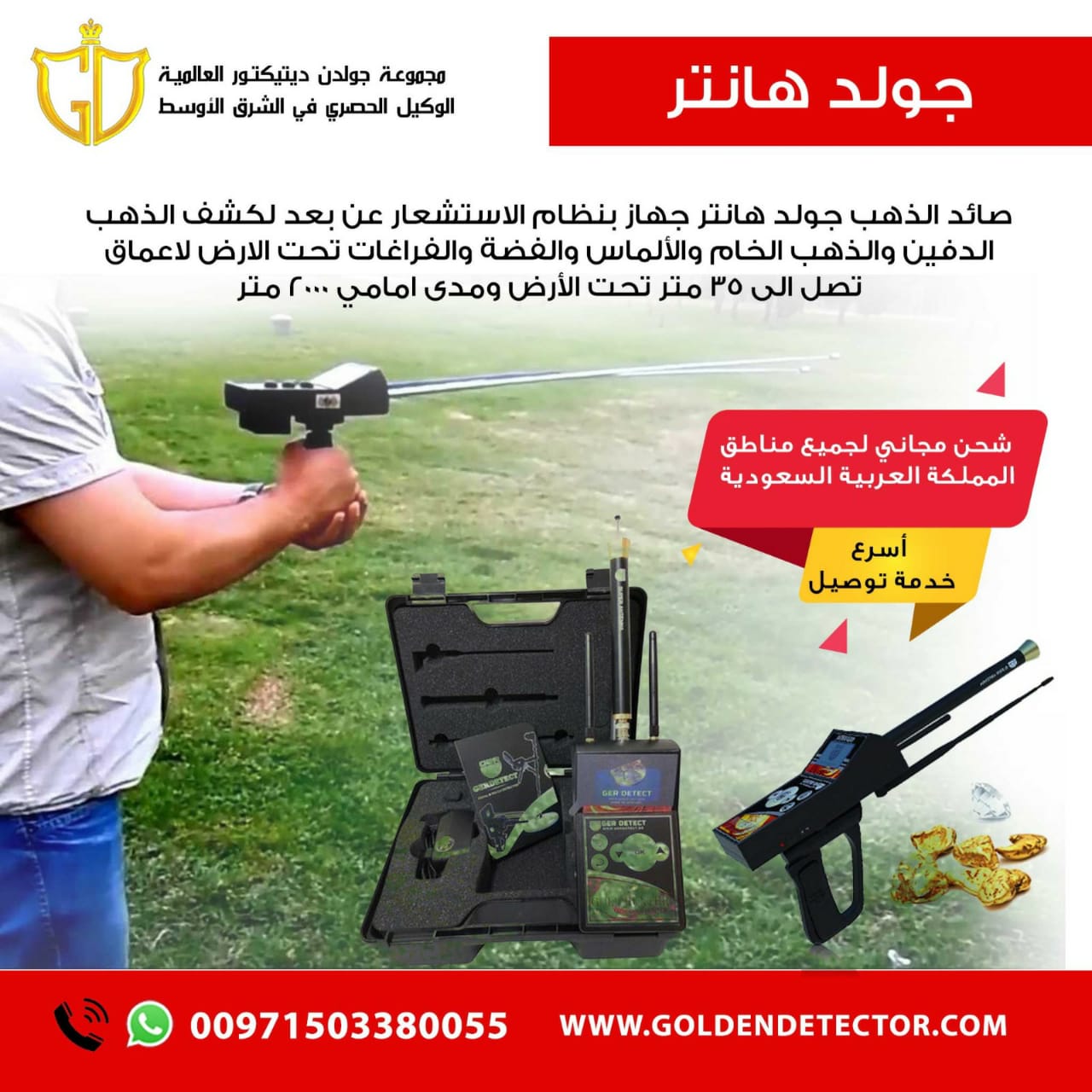 رابط الجهاز على الموقع : https://www.goldendetector.com/ae/gold-hunter-ger-detect