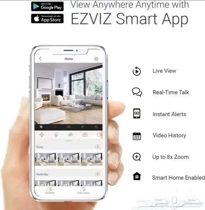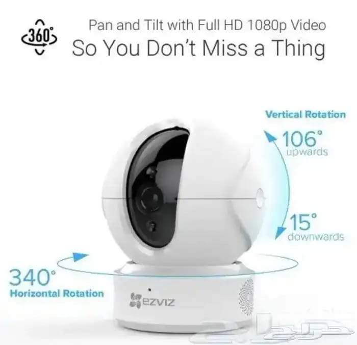 - كاميرا مراقبة ذكية للمنزل تدعم تقنية الواي فاي وبدقة تبلغ 1080 بكسل/ 2 ميجا بكسل.