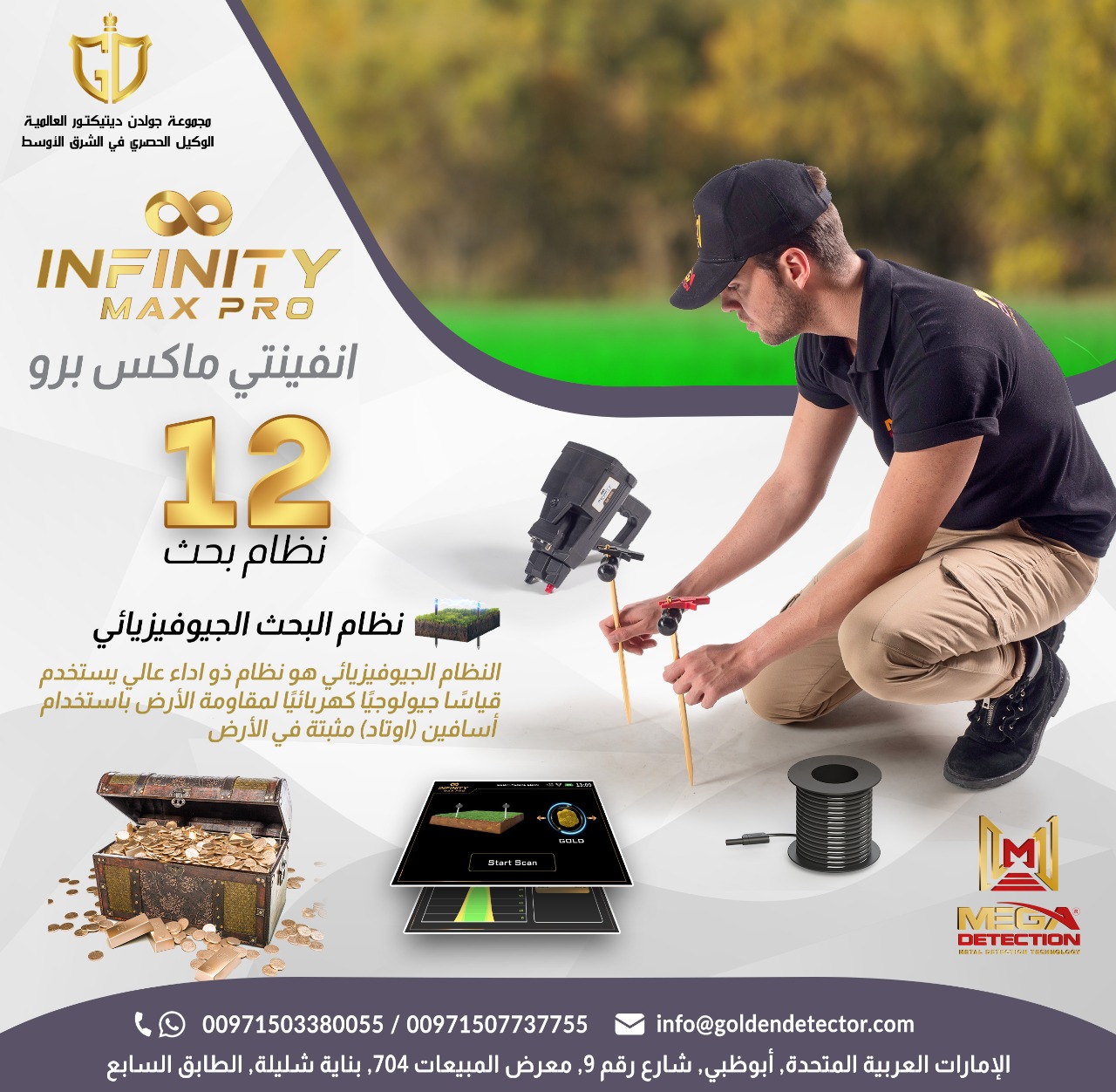 جهاز # انفينيتي_ماكس_برو شامل ومتكامل يمكن استخدامه في تطبيقات كشف متعددة تتضمن التنقيب عن الآثار و كشف الذهب الطبيعي الخام وكشف الكنوز على اعماق كبيرة وحتى كشف الفراغات كالانفاق والكهوف والسراديب