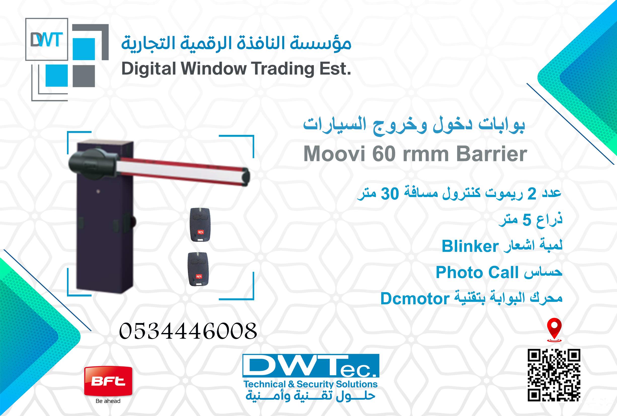 البوابة الامنية للمركبات والمواقف عباره عن بوابة اتوماتيكية بذراع مثبت على قاعدة يتم فتحه وغلقه عن طريق وحدة التحكم لفرد الامن او الريموت ويمكن اضافة جهاز تحكم في الدخول ويتم الفتح والغلق بالكارت او البصمة او الرقم السري