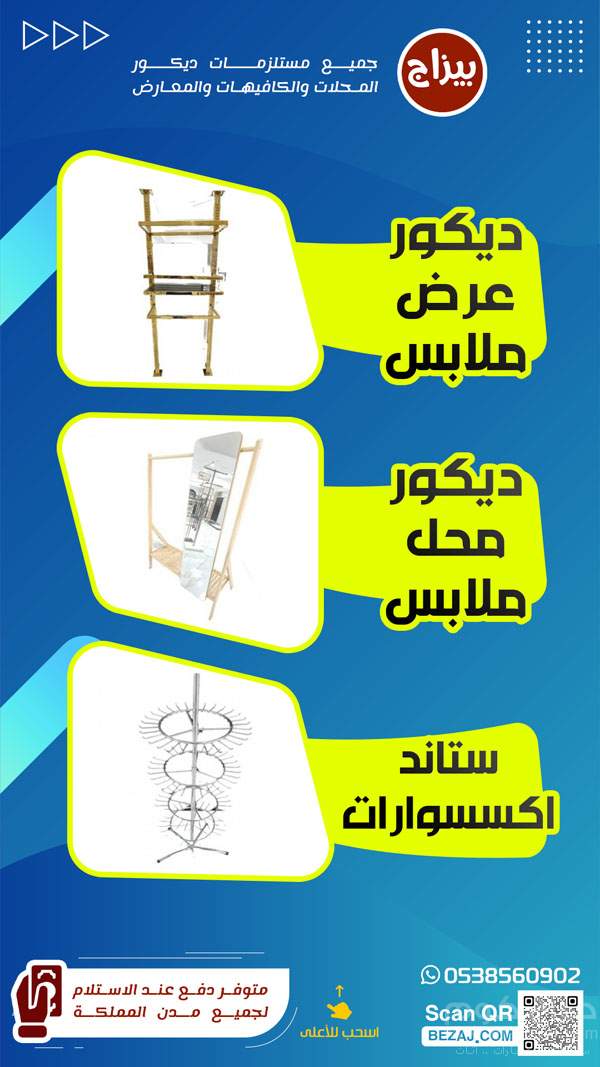 - يتوفر لدينا ديكور خاص بمحلات الملابس ستاندات ملابس متنوعة