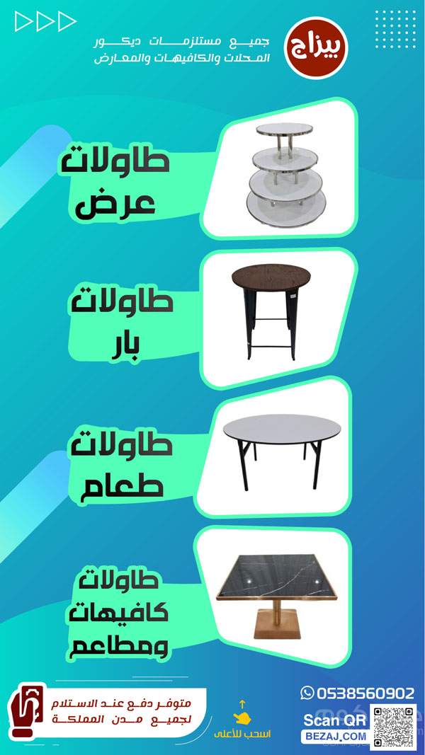 -يتوفر لدينا كراسي وطاولات كافيهات ومقاهي ومطاعم