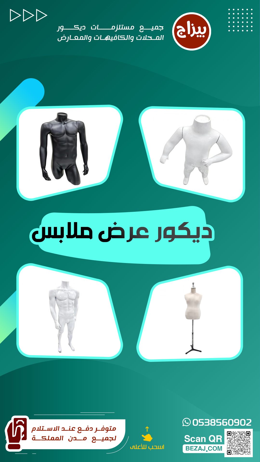 تعد مجسمات عرض الملابس من التجهيزات الضرورية في محلات بيع الملابس، فهي تبرز الملابس وتمنحها قيمة مضافة، مما يشجع الزبون على اقتناء السلعة المعروضة. في متجر بيزاج ستجدون تشكيلة متكاملة من المجسمات والتي تناسب ملابس الرجال والنساء والأطفال.