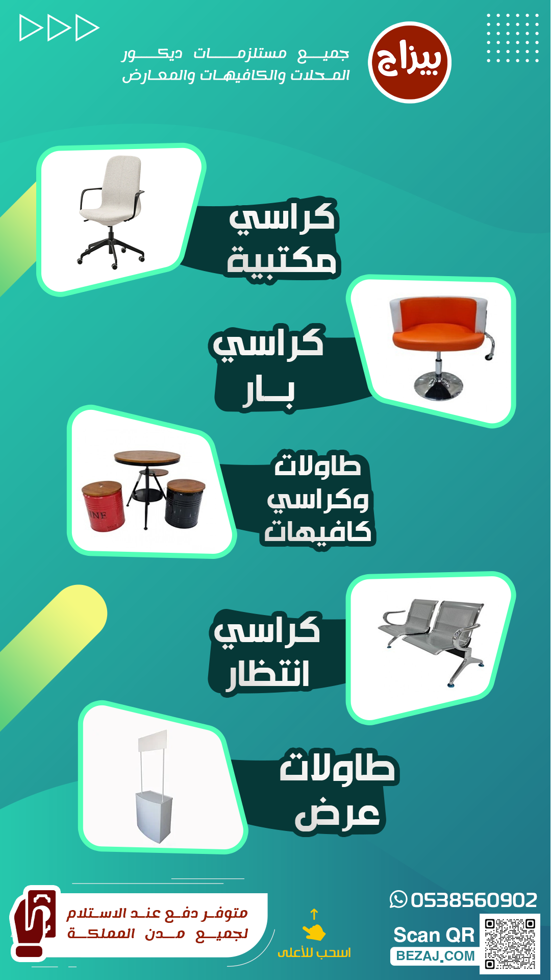 متوفر مساحات طاولات لجميع الكافيهات والمقاهي والحدائق وكراسي
