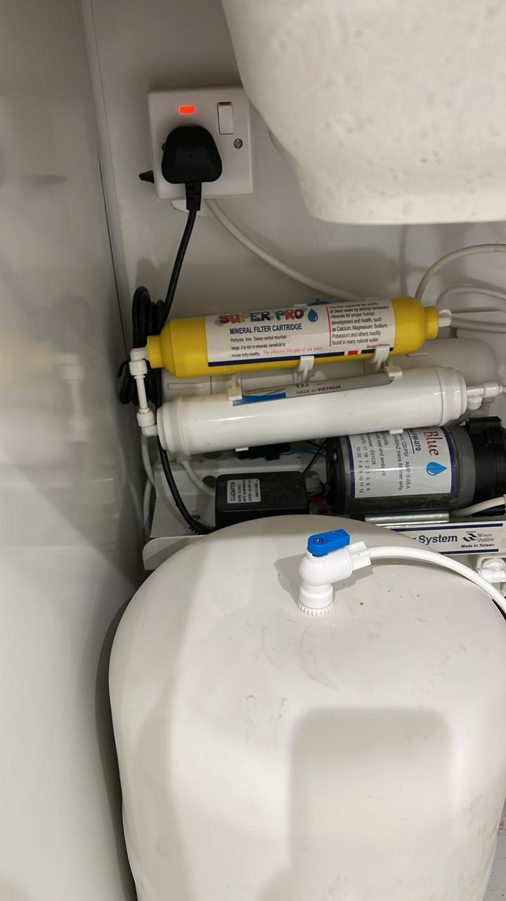 فحص المياه وإجراء اختبار ملوحة لمعرفة نوع الفلتر المناسب وعدد المراحل التي يتكون منها.