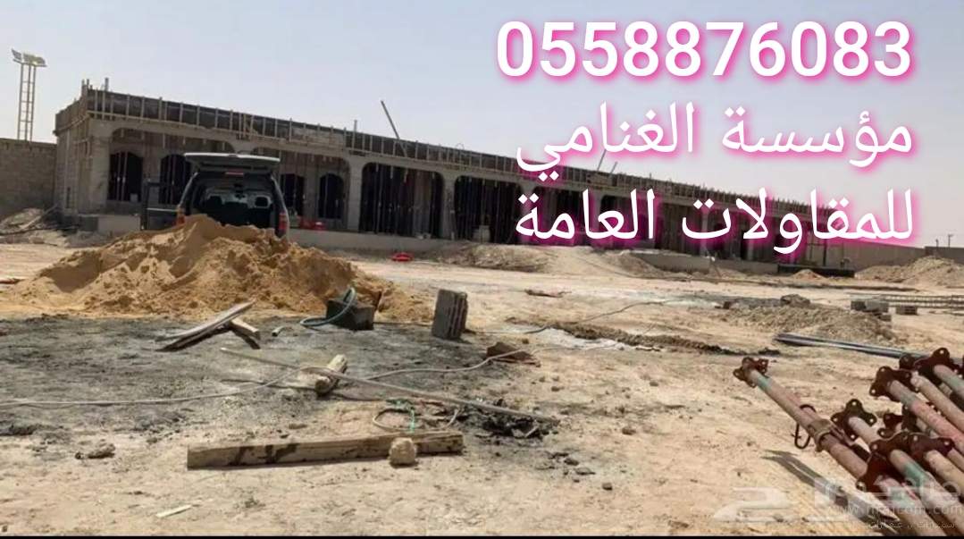 سلام عليكم ورحمه الله نحنا موئسسه الغنامي للمقاولات. العامه. انشاء فلل. مساجد قصور. عماير. هناجر محطات. ستراحات. شاليهات. اسوار تحويش اراضي. مجالس. عليوه. و ارضيه. سقف رتداد توسعه غرفه عمال. تشطيب وترميم. اعمالنا داخل الرياض وخارج الرياض. في كل انحاء الرياض. بشراف هندسي. المقاول. ابو سلطان. 0558876083