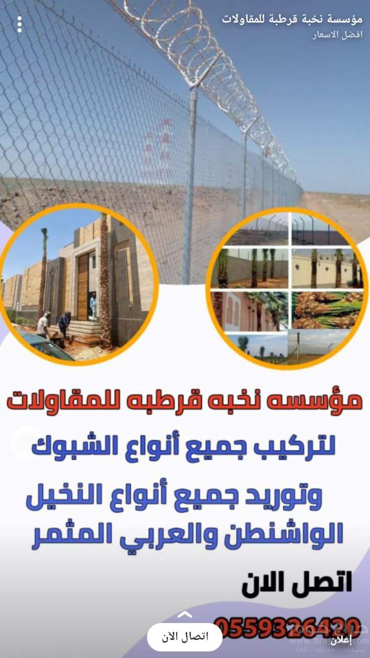 مؤسسة نخبه قرطبة للمقاولات تركيب شبوك وتوريد نخيل 0559326420تركيب الشبوك للمزارع والكسارات والطرقات والملاعب وتوريد نخيل الوشنطن والعربيللعمل في جميع انحاء المملكة0559326420https://www.cordobadv.com/https://store-39958.business.site/?m=true