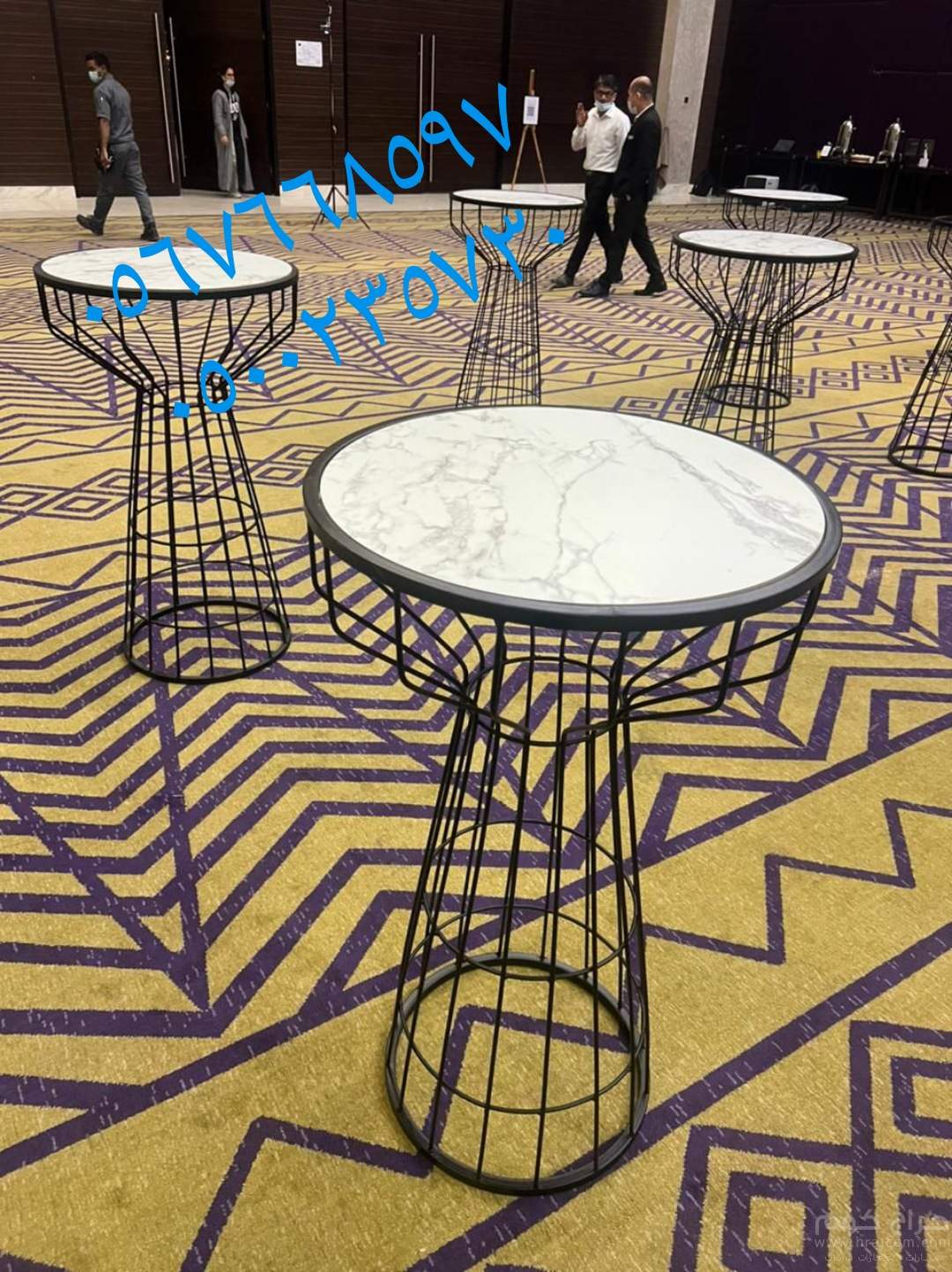 تاجير طاولات كوكتيل متوفرة بالأنواع : مضيئة , تلبيسة , حديد مع خشب ,