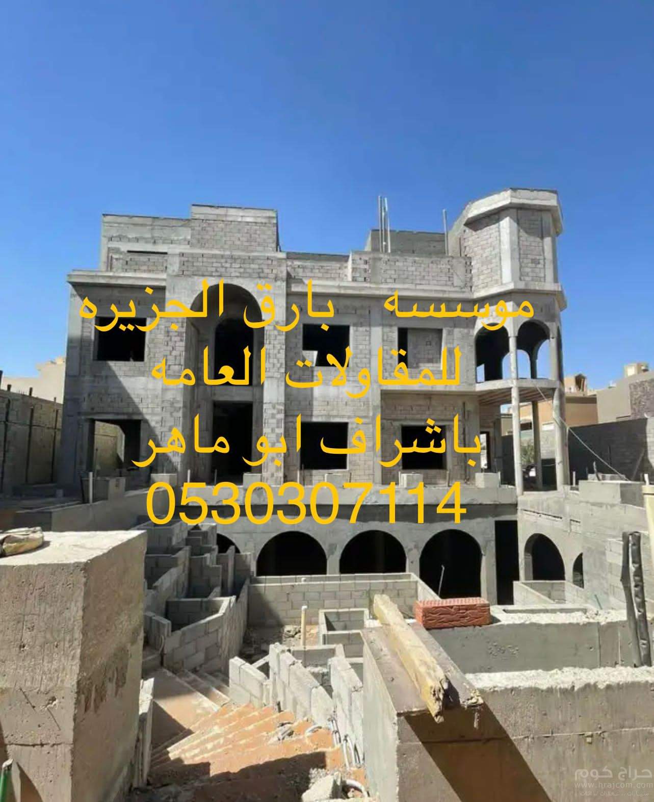 موسسه بارق الجزيره للمقاولات العامة* فلل* عماير* أستراحات* ملاحق،، مجالس* ارتدادات* مساجد* مسابح* شاليهات* صبات ارضيه* ترميم * تسوير أراضي* هناجر* مستودعات* غرف سواقين* توسعه غرف* وجميع أنواع البناء تحت إشراف هندسي،،للعمل في منطقة الرياضللتواصل المقاول ابو ماهر0530307114
