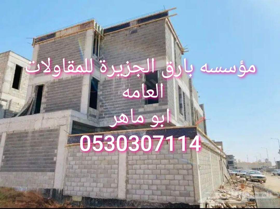 موسسه بارق الجزيره للمقاولات العامة* فلل* عماير* أستراحات* ملاحق،، مجالس* ارتدادات* مساجد* مسابح* شاليهات* صبات ارضيه* ترميم * تسوير أراضي* هناجر* مستودعات* غرف سواقين* توسعه غرف* وجميع أنواع البناء تحت إشراف هندسي،،للعمل في منطقة الرياضللتواصل المقاول ابو ماهر0530307114