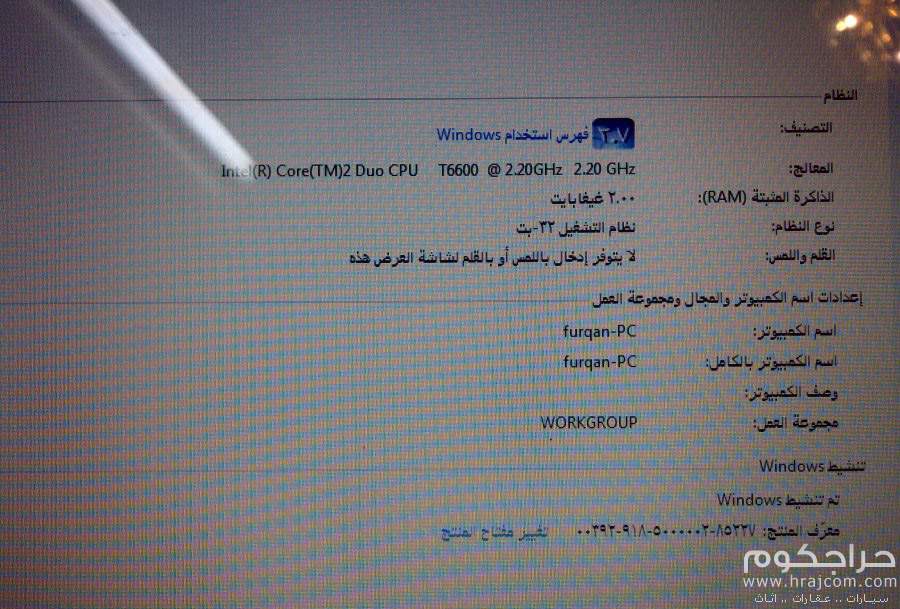 حجم الكرت 1جيجا نوعه Mobile Intel(R) 4 Series Express Chipset Family مدمج
