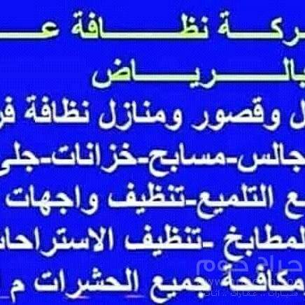 غسيل خزنات المياه الارضي والعلوي مع التعقيم والتطهير.شركة.تسليك مجاري. تسليك حمامات. تسليك بلاعات. تسليك صفايات. تسليك الصرف الصحي. تسليك غرفة التفتيش. ترميم غرفة التفتيش شركة.غسيل مجالس وسجاد وموكيت وكنب وفرش وبيوت شعر.غسيل فيلا وشقق واستراحات ومساجد ومكاتب.رش مبيد للحشرات ومكافحة جميع انواع الحشرات المنزليه