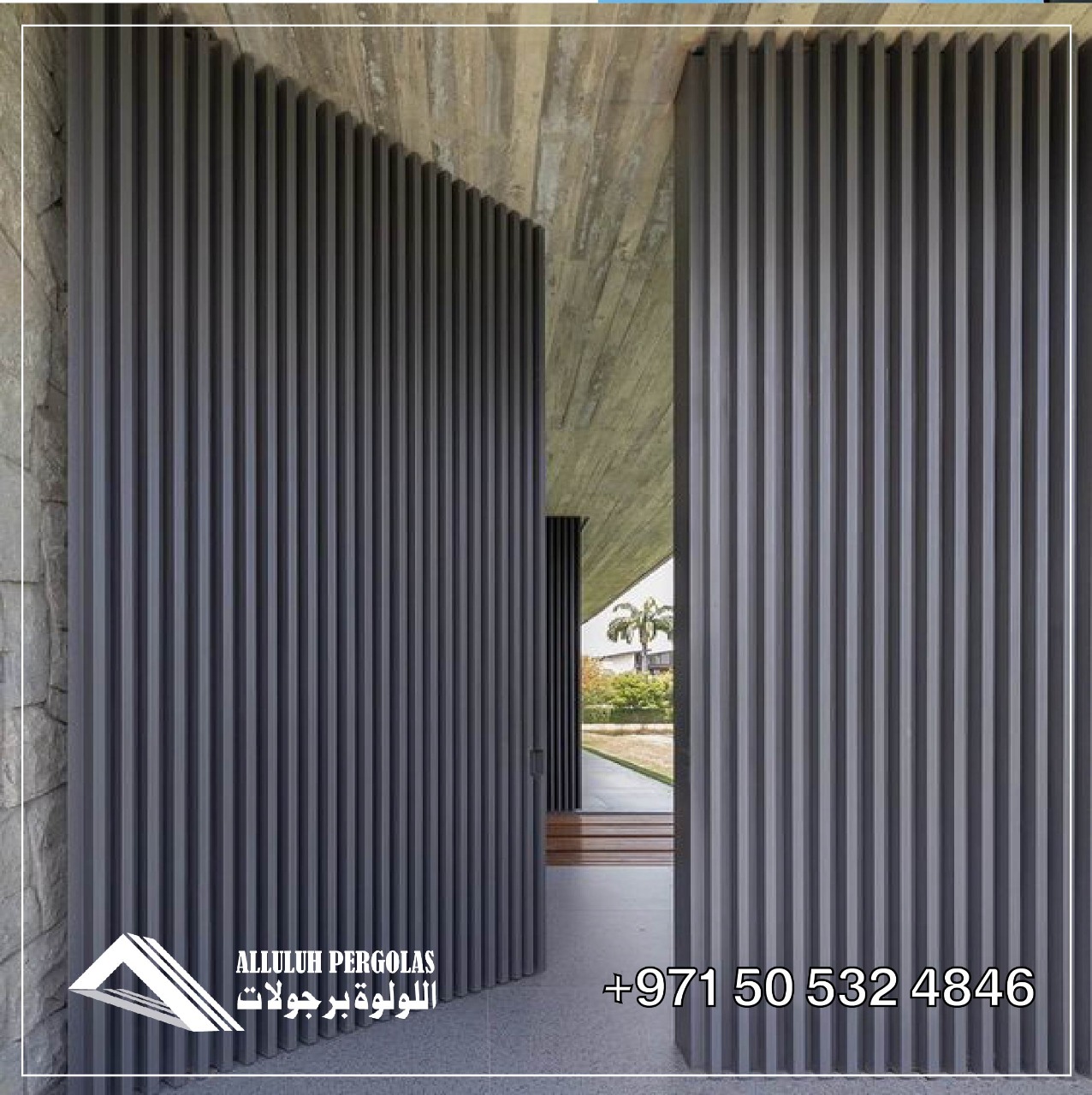AL-LULUH PERGOLA is a leading company in Aluminum pergola & shade structures for seating areas, car parking Shade, Boundary wall fence, Main Gate (swing & Sliding), Aluminum Louver, CNC Screen Panel and Aluminum Pergola for barbeque areas. By applying the most avant-garde design concepts, the finest materials, and the most precise engineering, we specialize in helping create the most compelling shaded outdoor settings. We work with architects, engineers, and our clients, designing and executing exquisite Aluminum pergola & shade structure.