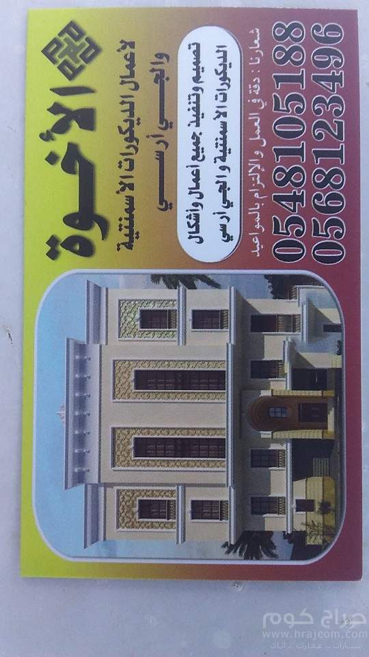 تنفيذ جميع أنواع وأشكال الوجهات الأسمنتية والــ جى أر سى تركيب وتنفيذ الواجهات الإسمنتية وديكورات الــ GRC الداخلي والخارجي للمباني والواجهات والشبابيك والأبواب والمداخل وكافة الأماكن المعمارية الحكومية والتجارية والخاصة بمواصفات عالية الجودة وأسعارنا تنافسية كما نقدم للعميل مجموعة من الخيارات والتصاميم المميزة لتركيب وتنفيذ أفخم أنواع ديكورات الــ جي أر سيالعمل في جميع انحاء المملكه05610318890568123496