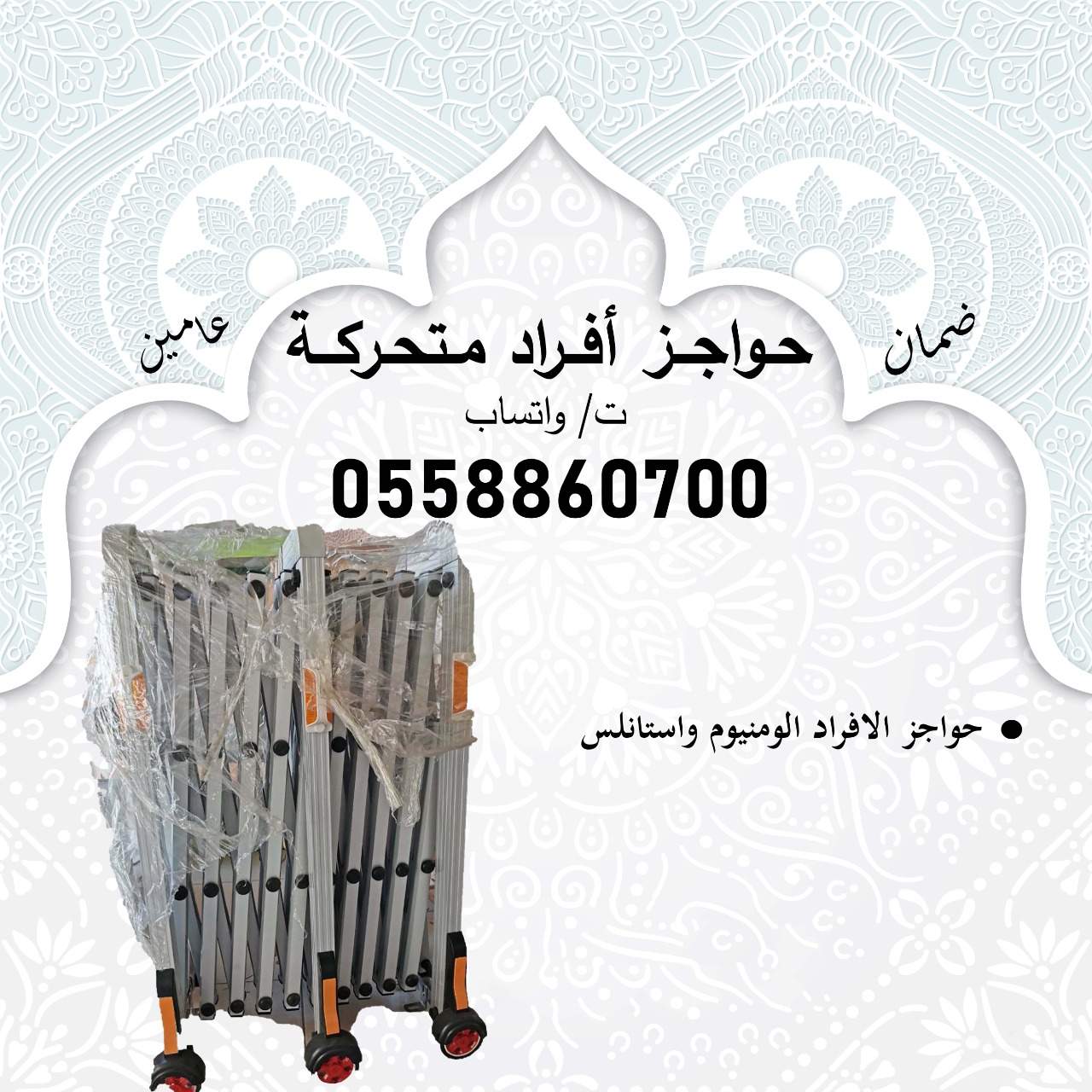 يتوافر لدينا أفضل انواع الحواجز المعدنية المتحركة من الألومنيوم والأستانلس خامة متية تتحمل العمل الشاقمزودة بعجلات لتسهيل الحركة والنقل من مكان الى اخر يتوافر أفضل حواجز معنية متحركة من الألومنيوم وكذلك من مادة الأستانلس طول الحبة 4 أمتار وأرتفاعها 12 سموسماكة حوالى 28 سم حواجز معدنية قوية من الألومنيوم والأستانلس للطلب والمراسلةجوال / واتس0558860700