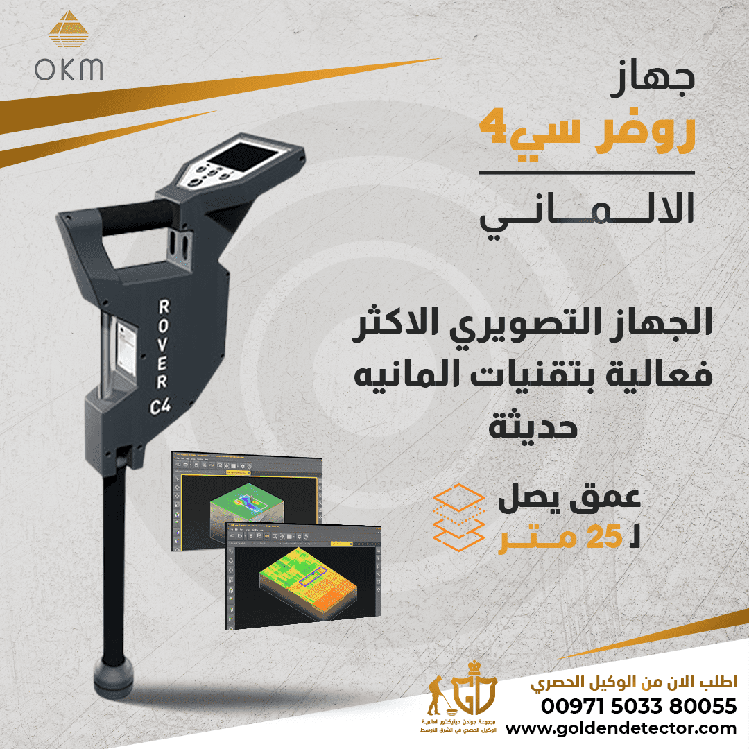 جهاز كشف الذهب بالنظام التصويري روفر سي 4 هو الجيل الاحدث من اجهزة كشف المعادن واجهزة المسح الارضي الثلاثي الابعاد . يضم الجهاز تقنية محسنة من شركة OKM الالمانية العريقة لكشف المعادن والذهب والآثار
