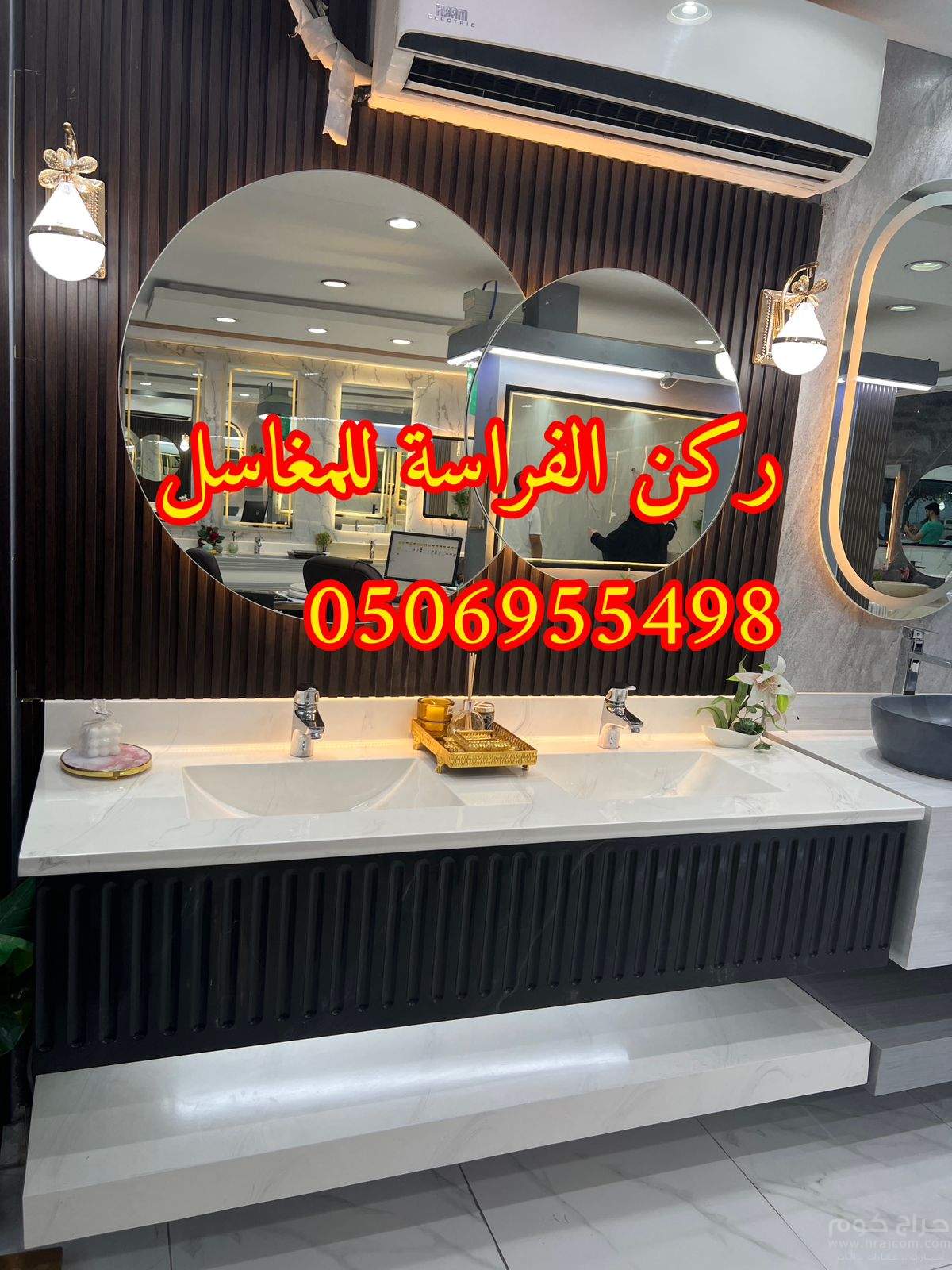 نقوم بتصميم العديد من اشكال وديكورات مغاسل رخام للحمامات والمجالس والمنازل حوض او حوضين حسب الطلب .