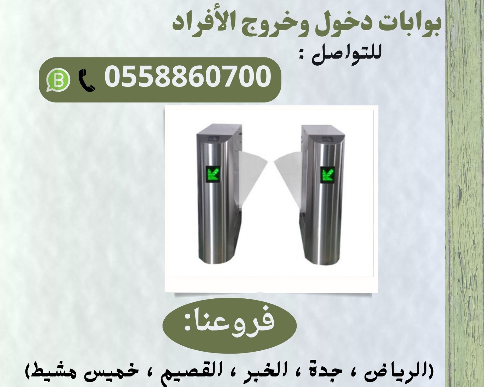 تعتبر بوابات الأفراد الألكترونية من أهم التقنيات الحديثة فى التحكم المادي فى دخول وخروج الأفراد لمنشأة معينة وذلك بتحديد الأشخاص المسموح لهم بذلك فقط وتحديد صلاحياتهم فى ذلك أيضا تعمل البوابة بعدة طرق منها الكارت والبصمة والرقم كما يمكن تشغيلها من بعد عن طريق الريموت وتقوم البوابة بعمل صافرة انذار فى حالة تجاوزها بغير الطرق المصرح بها بوابه دخول وخروج الأفراد تقوم ايضا بعمل تقارير مفصله عن حركة المرور من خلالها باسماء ومواعيد الدخول والخروج نقوم بتركيب وتوريد وتشغيل بوابات الأافراد الألكترونية فى أي مكان بالممملكه كما يوجد ضمان لمدة عامين ضد عيوب الصناعه وصيانه متوافرة في كل الأوقات لطلب بوابات الأفراد الألكترونية وجميع الأجهزة الأمنية يمكنكم التواصل معنا عن طريق جوال / واتساب0558860700