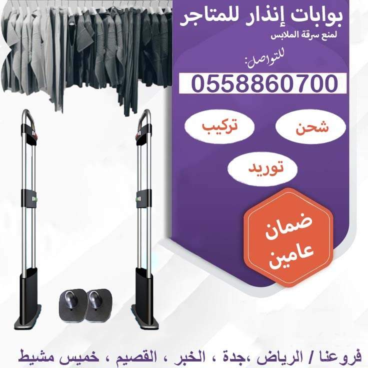 من الان لا داعي أن تشغل بالك بمراقبه الزبائن ولا خوف على بضاعتك من السرقه من نظام بوابات انذار سرقة الملابس انت فى امان تام وبطريقة سهله والكترونية حديثة بوابات واجهزة انذار المتاجر والملابس هي عباره عن بوابة من ضلفتين ويمكن زيادة ضلفه على حسب عرض المدخل للمحل او المتجر تقوم البوابه عن طريق مستشعرات حساس بعمل انذار صوتي وضوئي قوي في حاله محاوله خروج اي قطعه دون المرور على الكاشير وذلك عن طريق ما يسمى بالتاج وهي قطعه توضع على اي نوع من البضائع ولا يمكن فكها الا عن عن طريق الكاشير بعد دفع الثمن عن طريق جهاز فك التاج وفى حالة خروج أى قطعه بدون فك الناج او الاستيكر المثبت على القطعه فان البوابة تطلق صافره قوية مع تنبيه ضوئي بوابات انذار المتاجر او بوابات الانذار ضد سرقة الملابس هى بوابات ذات شكل انسيابى وعصري ومن خامه قوية تتحمل العمل الشاق بوابات انذار المتاجر نقوم بتركيبها وتشغيها فى اي مكان داخل المملكة العربيه السعودية او بدولة البحرين لدينا فريق مدرب وله سوابق اعمال كثيره جدا الضمان لمدة عامين وصيانه متوافرة فى كل الاوقات بوابات انذار الكترونية بوابات انذار ملابس بوابات انذار ضد سرقة الملابس بوابات عدم سرقة الملابس والصيدليات ومحلات النظارات والمتاجر والسوبر مركت البوابات مع التاجات والاستيكرات وجهاز فك التاج او الاستيكر هي منظومه كامله لضمان عدم سرقة اي قطعه مهما بدت صغيره داخل المتجر بوابات حماية ضد السرقة بوابات انذار الكترونية للطلب ج/ واتس0558860700