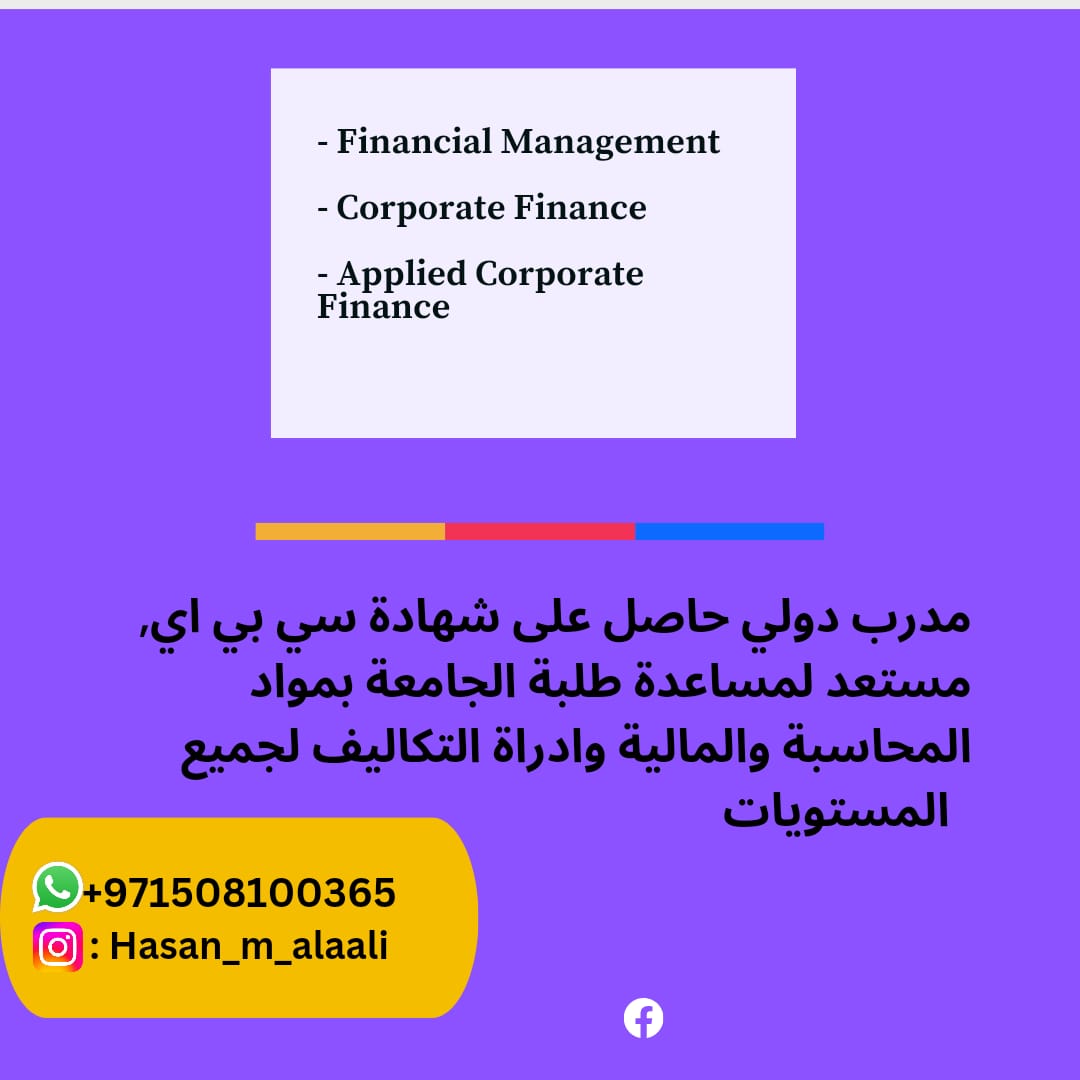 مستعد لمساعدة طلبة الجامعات في مواد الإدارة المالية وفروعها المختلفة