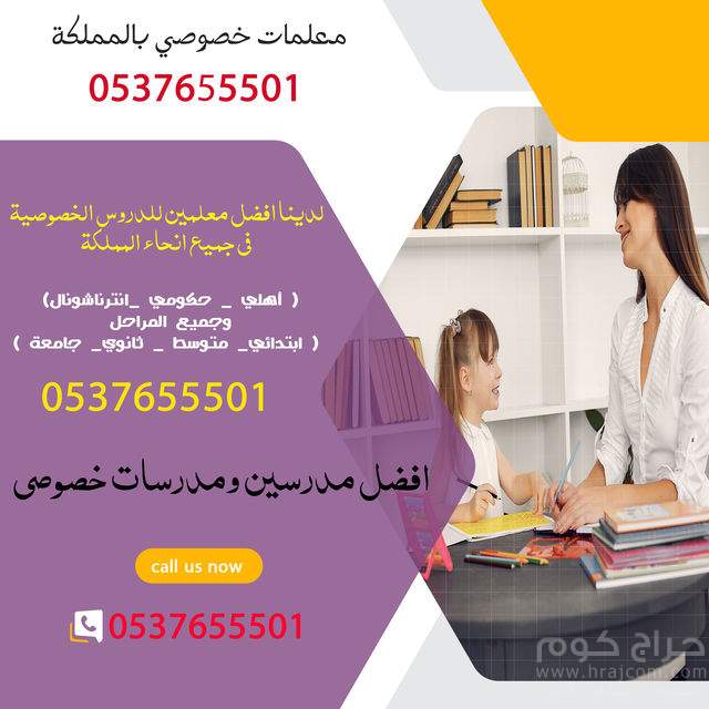 معلمين ومعلمات خصوصي تأسيس ومتابعة جميع المراحل التعليمية لجميع المواد الدراسية ابتدائي ومتوسط وثانوي وجامعة (حكومي، اهلي، إنترناشيونال)