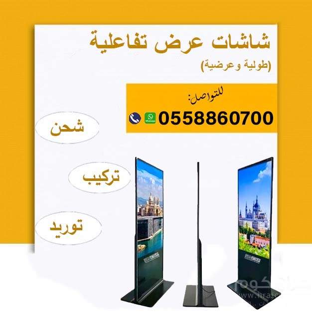 يتوفر لدينا الشاشات التفاعلية بالعديد من المقاسات والمواصفات شاشات طوليه وشاشات عرضيهشاشات باللمس وبدون لمسشاشات أندرويد وشاشات ويندوز تبدا الشاشات من 43 أنش وحتى 65 أنشنقوم بالتوريد والتركيب والتشغيل يوجد ضمان عامين ضد عيوب الصناعه شاشات تفاعلية , شاشات تفاعلية طولية, شاشات تفاعلية عرضيه, شاشات باللمس, شاشات تاتش , شاشات بدون لمس شاشات طولية , شاشات عرضيه. شاشات تفاعلية ويندوز . شاشات تفاعلية اندروية شاشه تفاعلية ويندوز. شاشه تفاعلية اندرويد شاشات تفاعلية للبيع . شاشات تفاعلية جديدة للبيع للتواصل والطلب والاستفسار جوال / واتساب0558860700