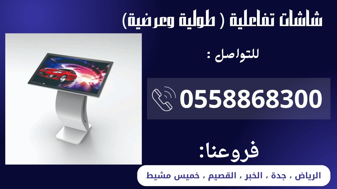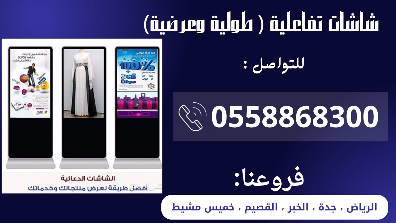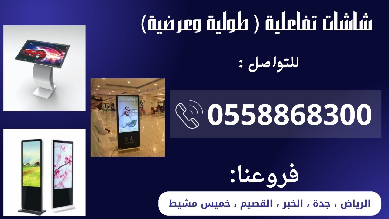متوفر لدينا جميع شاشات الإعلانية التفاعلية بانواعها تعمل بلمس او بدون وبجميع المقاسات