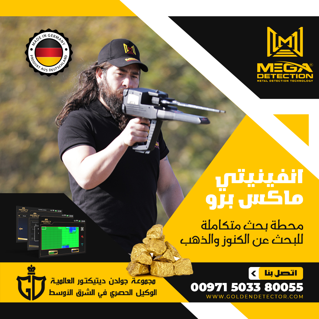 جهاز انفينيتي ماكس برو محطة متكاملة للبحث عن الكنوز و الذهب و الفراغات في باطن الارض, تحفة فنية مقدمة من مصنع ميجا الالماني تضم 12 نظام فعلي و دقيق للبحث عن جميع الاهداف الثمينة لمسافات و اعماق لم يتم الوصول لها من قبل, الجهاز المعتمد من قبل الكثير من شركات التنقيب العالمية للبحث عن الآثار و الانفاق المدفونة منذ الاف السنين, جهاز الانفينيتي ماكس برو يتربع على قمة هرم اجهزة التنقيب في العالم بكل جدارة. انفينيتي ماكس برو - Infinity Max Pro جهاز كشف الذهب والمعادن الألماني اقوي اجهزة كشف الذهب والمعادن جهاز انفينيتي ماكس برو - Infinity Max Pro متاح الأن توصيل إلى جميع الدول جهاز سهل الإستخدام ويدعم اللغة العربية الشركة المصنعة : ميغا ديتكشن يدعم اللغة العربية وسهل الإستخدام بلد المنشأ : ألمانيا عمق البحث : 50 متر نطاق مسح أوسع يصل إلى 3000 متر ضمان وكفالة 5 سنوات شحن سريع إلى جميع الدول اول جهاز في العالم ب 12 نظام بحث للكشف عن المعادن Infinity Max Pro جهاز # انفينيتي_ماكس_برو شامل ومتكامل يمكن استخدامه في تطبيقات كشف متعددة تتضمن التنقيب عن الآثار و كشف الذهب الطبيعي الخام وكشف الكنوز على اعماق كبيرة وحتى كشف الفراغات كالانفاق والكهوف والسراديب 12 نظام بحث تشمل جميع تقنيات الكشف عن المعادن بآخر التطورات و التقنيات في مجال التنقيب - نظام المسح الأرضي ثلاثي الابعاد - النظام الاستشعاري بعيد المدى اليدوي / MANUAL LRL / - النظام الاستشعاري بعيد المدى الاوتوماتيكي - النظام الاستشعاري بعيد المدى مع التحكم بالتردد / CTRL LRL / - النظام الايوني / IONIC/ - نظام البايونيك / BIONIC/ - نظام البث المباشر / LIVE STREAM/ - نظام تحديد موقع الهدف / PINPOINTER/ - نظام الحث النبضي / PULSE INDUCTION/ - نظام كشف المعادن الذكي/ SMART DETECT/ - نظام البحث الجيوفيزيائي / GEOPHYSICAL/ - نظام مسح الانفاق / TUNNEL SCAN/