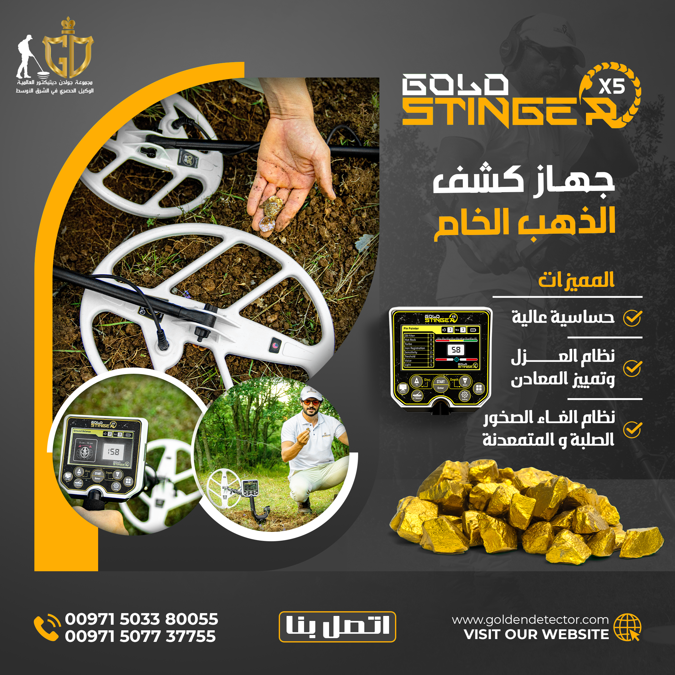 جهاز Gold Stinger X5 جهاز كشف معادن لجميع المنقبين المحترفين والهواة والباحثين عن الكنوز متعدد الاستخدامات لكشف الاهداف المختلفة تحت الأرض بفضل ميزاته المتنوعة .