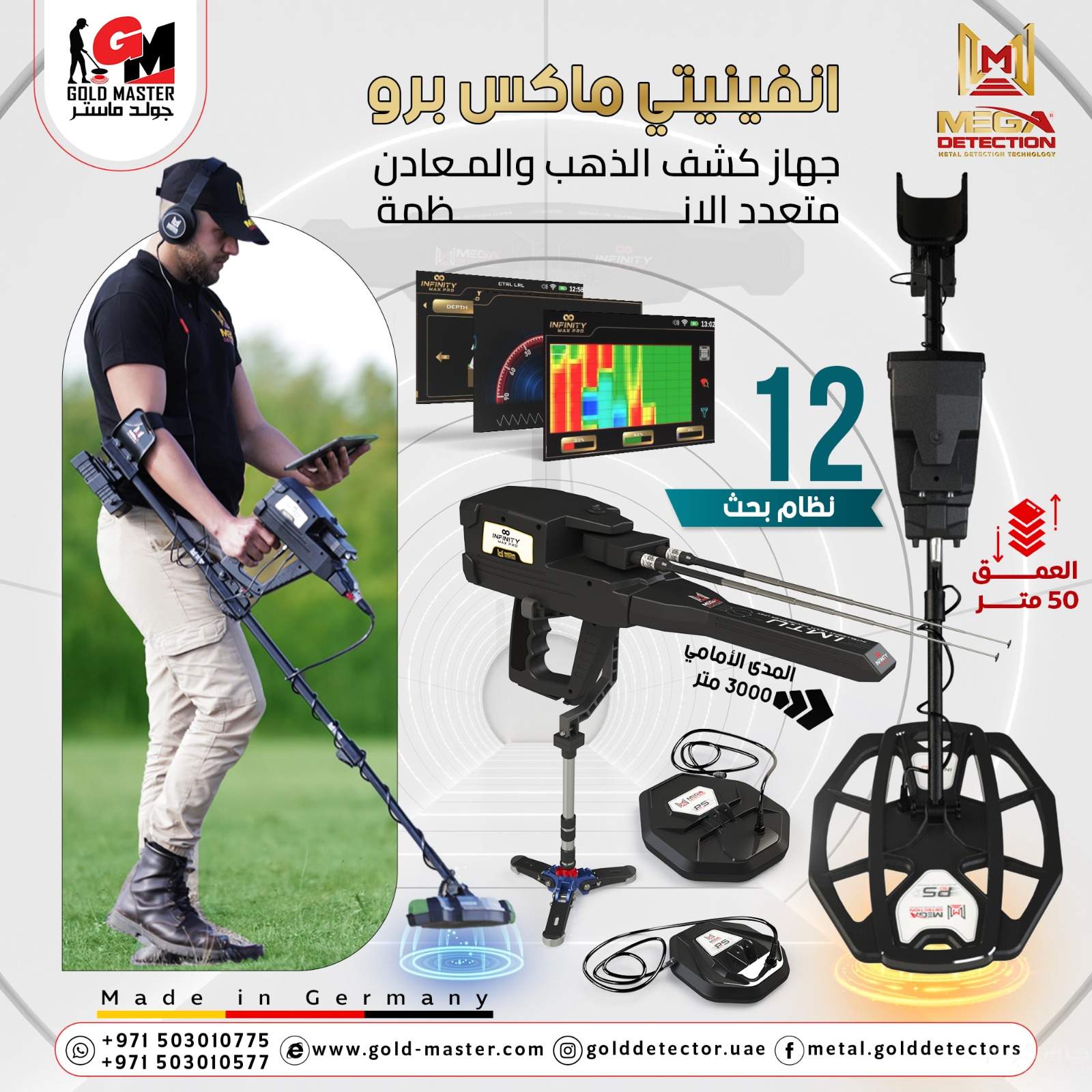 انفينيتي ماكس برو جهاز كشف المعادن من شركة ميغا ديتيكشن الالمانية احدث اصدارات الشركة لعام 2022 جهاز متكامل وشامل بفضل تعدد تقنيات البحث في الجهاز لكشف المعادن والتنقيب عن الكنوز وكشف الذهب و تطبيقات اخرى .