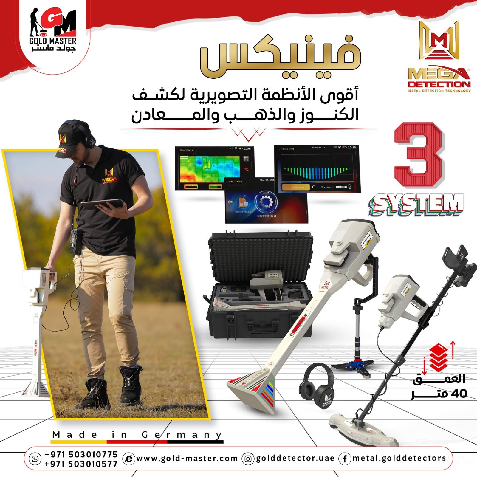أنتجت شركة ميجا ديتكشن جهازًا احترافيًا فعالًا مع 3 أنظمة بحث تصويرية مناسبة للمنقبين المحترفين وصائدي الكنوز الباحثين عن الآثار والكنوز الذهبية.