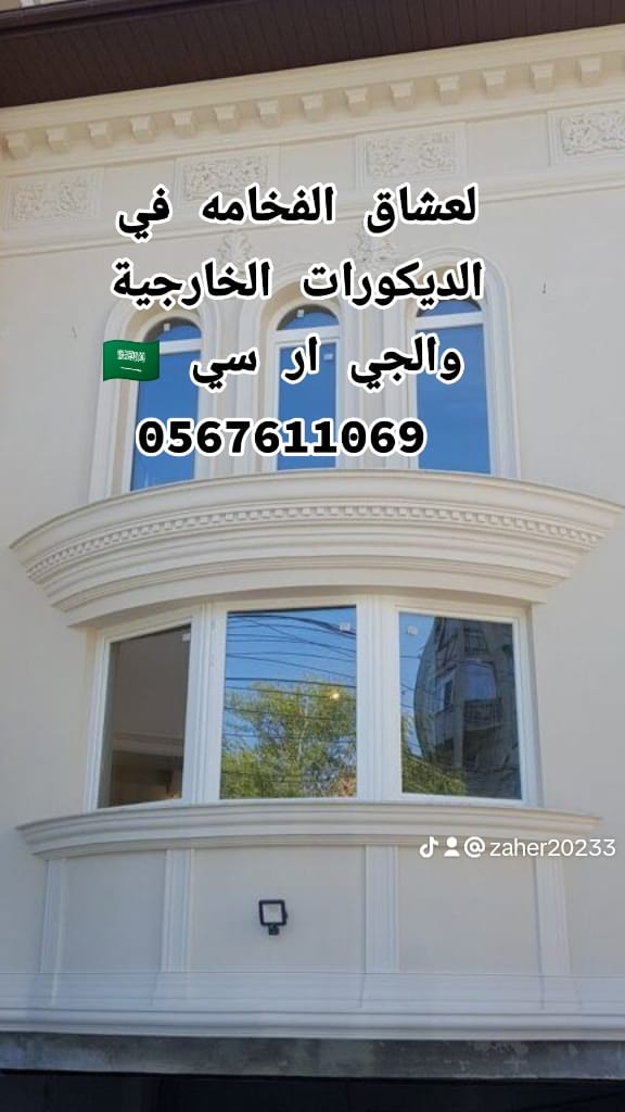 مؤسسة سامر الجنوب للديكورات الخارجية والجي ار سي:- احدث التصميمات الخارجية تسليم هندسي، دقه في المواعيد، فنيين متخصصين بخبرات ممتازه في مجال الديكورات الخارجية، اسعار خاصة للمساجد والرعاية الخيرية، متواجدون فى جميع انحاء المملكة، خبره ٢٠ عام. الـ جي آر سي لتكسية واجهة المباني الحكومية – رؤية 2030 للمملكة أصبحت مادة الـ جي آر سي كمادة شائعة التداول ويفضل استخدامها، وتوصيفها من المكاتب الاستشارية والهندسية في العالم لما تحققه من مزايا عديدة تساعد في تصميم وابتكار واجهات ذات تشكيلات فنية جديدة وإمكانية التنفيذ بالطرز المعمارية ذات الطابع والتأثير المتميز..... تنفيذ مقاولات ديكورات جي آر سي , ديكور وزخارف واجهات المباني , الفلل , القصور ، المساجد ، الابراج ، الفنادق ، الشركات... تحت اشراف مهندس الديكور/ العناني للديكورات 3D........ 0567611069