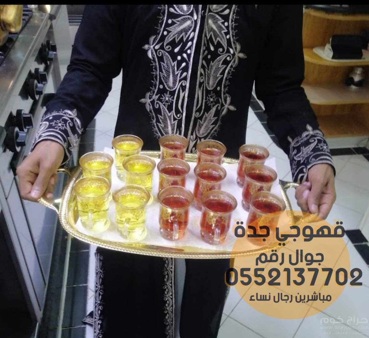 مع طاقم القهوة المتكامل بجميع قطعة والكاسات والمباخر والزي المشرف أيضا الذي يتناسب مع كل مناسبة.