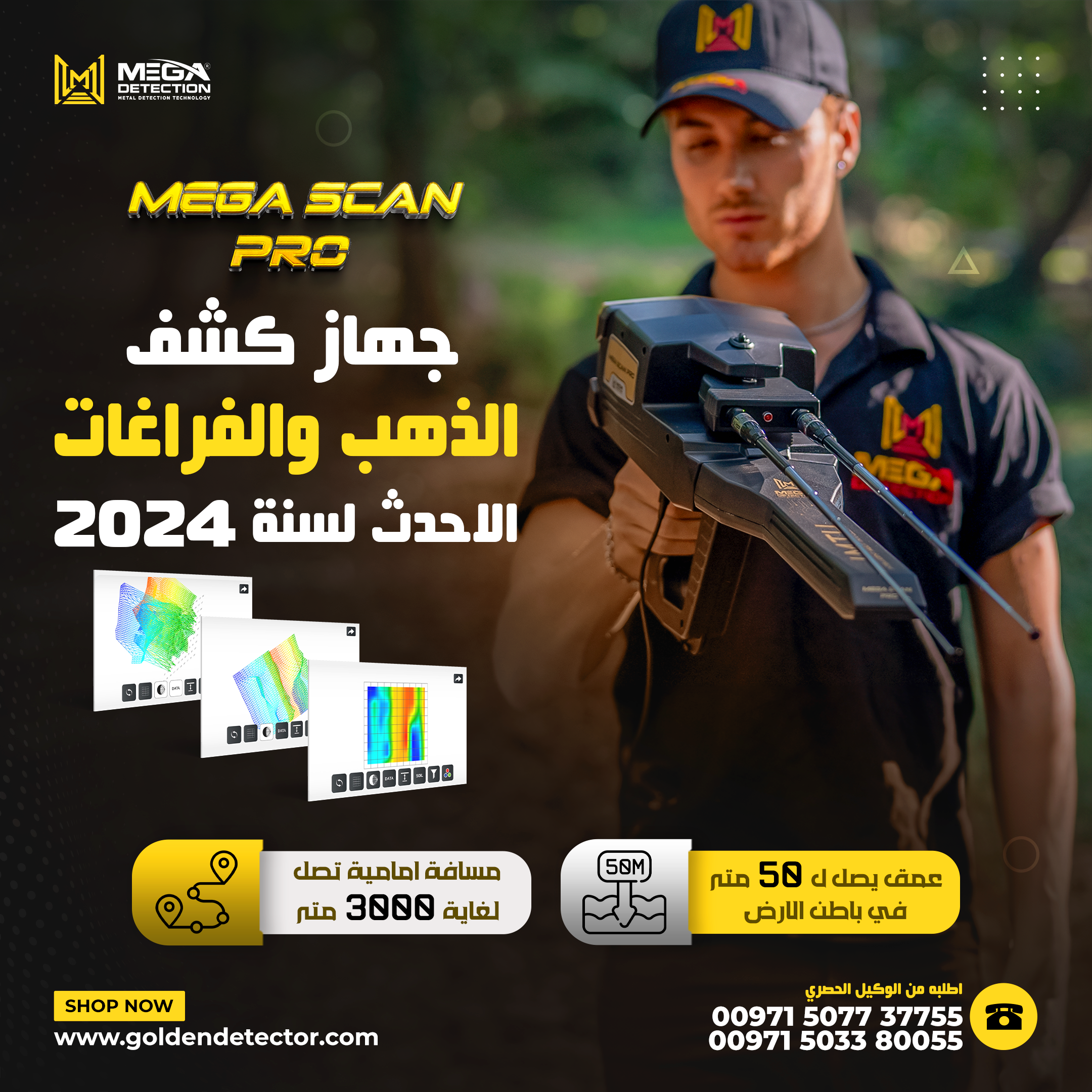 ميغا سكان برو اقوى جهاز للكشف عن الذهب والمعادن, تم تطويره خصيصًا لتلبية احتياجات منقبي الذهب والمعادن الثمينة في جميع أنحاء العالم, بميزاته المضمنة والملحقات المضمّنة والتقنيات المتقدمة الخاصة, بمثابة جهاز احترافي لجميع أنشطة الكشف عن المعادن في جميع التضاريس, يمكن اكتشاف التجاويف مثل الأنفاق والغرف المخفية تحت الأرض ، كما يمكنه اكتشاف الماس والأحجار الكريمة.