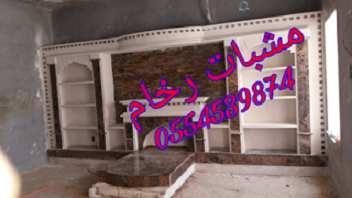 نوفر أشكال مشبات تراثية بأرفف تزينها الدلال والأباريق والملقاط والفناجين والتحف التراثية السعودية