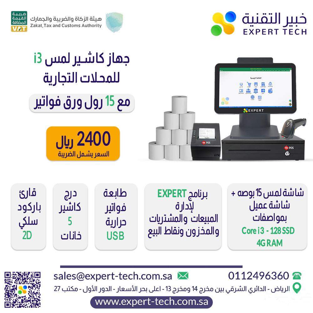 جهاز كاشير لمس للمحلات التجاريه والمطاعم وجميع الانشطه التجاريه :- -:مكونات الجهاز:- 1 - شاشه تاتش 15 انش بها شاشه خلفيه للعميل 2 - طابعة فواتير حرارية 3 - قارئ باركود 4 - درج نقود 5 فتحات 5 - برنامج مبيعات ومشتريات ومخزون البرنامج معتمد من هيئة الذكاه والضريبه والدخل ويدعم الفاتوره الالكترونيه البرنامج مرخص مدي الحياه بدون اشتراكات سنويه. مميزات البرنامج: يدعم اللغه العربيه والانجليزيه يدعم ضريبة القيمة المضافة ومعتمد من هيئة الذكاة والضريبه والدخل إدارة الأصناف وسهولة إدخالها بطرق عديدة إصدار الفواتير بكافة أنواعها مع طباعة شعار وبيانات الشركة مراقبة وجرد المخزون بشكل دقيق ومفصل تنبيهات عند الوصول إلي الحد الأدني من الكميات وتواريخ الانتهاء امكانية عمل عدد لا محدود مستخدمين للنظام يحتوي على مجموعة كبيرة من التقارير . ضمان عامين علي الاجهزه ضد عيوب الصناعه. دعم فني مجاني لمدة عام فروعنا (الرياض-جده-خميس مشيط) #جهاز_كاشير #كاشير_مطعم #كاشير_بوفيه #كاشير_محامص #كاشير_بقاله #كاشير_معتمد_من_هيئة_الزكاه #برنامج_الكاشير #برنامج_محاسبي #اجهزة_كاشير #برنامج_سحابي_ERP