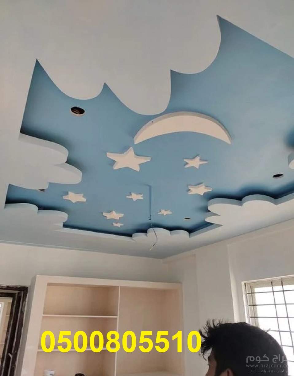 الأسقف المعلقة: الأسقف المعلقة من الجبس تُستخدم لإخفاء الأسلاك والتمديدات الكهربائية ويمكن تصميمها بأشكال متنوعة لتناسب ديكور الغرفة.
