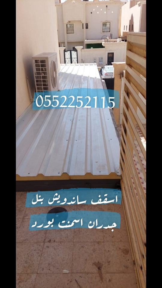توريد وتركيب الساندويش بنل " طبقتين شينكو بنهم عازل فلين مضغوط " يتوفرسماكة 5 سم و 7.5 و 10 سم يتميز بخفة الوزن و سرعة التنفيذ و النظافةمع بناء جدران اسمنت بورد الواح اسمنتية مقاس 240 *120 سم تعتبر جدار مليس يحتاج دهان فقطويكون بين طبقات الاسمنت بورد عازل صوف صخري يعزل صوت وحرارةوايضا تمتاز بخفة الوزن وسرعة التنفيذ والنظافةونعمل ايضا أسقف قرميد فخاري ومعدني للتواصل : 0552252115